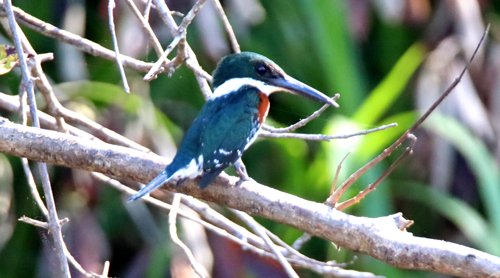 Green Kingfisher - Similar to the Amazon but smaller with several markings different including white spots not on the Amazon. See more photos of this common Kingfisher on both slopes at Green Kingfisher Gallery. ¡Pura Vida!