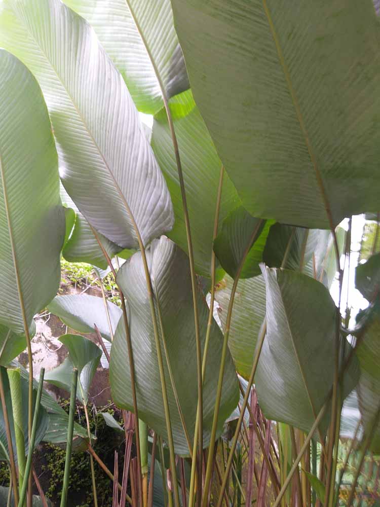 Pampano, Calathea lutea (iNaturalist link) is called Bijao in Spanish (common name) though my gardener calls it “Bijagua” which is name also used for a similar big-leaf plant that in English is called Rattlesnake Plant, with a flower like the rattles of a rattlesnake, while this plant has flowers sort of like cigars, giving it the English common names of Cigar Plant (my blog post in March showing the “cigar” flower) or Cigar Calathea. Back then the wind had shredded these big beautiful leaves which look nicer now. These leaves are used by some restaurants to wrap food or serve food on.