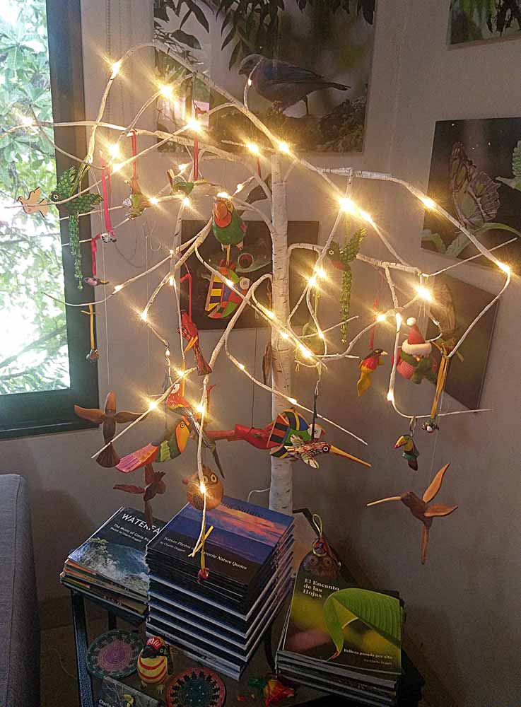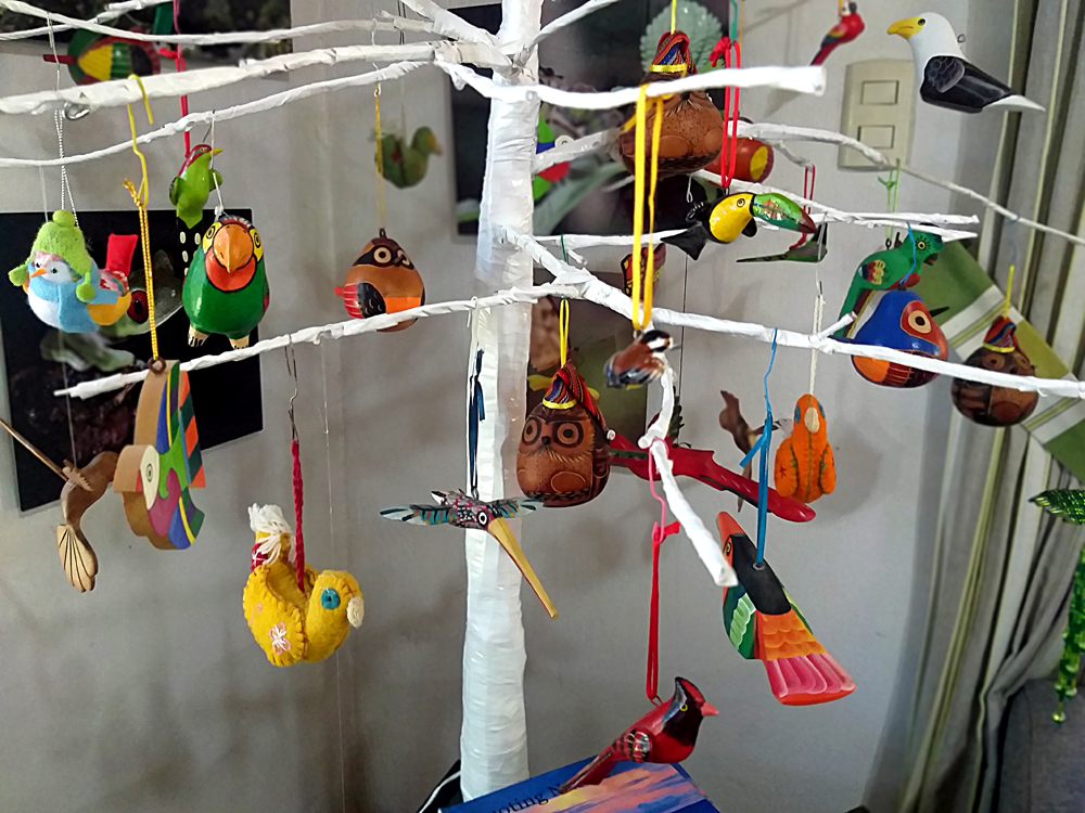 Some of you may remember that back in 2017 I started a collection of handmade “Artisan Birds,” mainly from artists in Costa Rica, but a few from other Central American countries and ended up with 2 from countries outside Central America. The collection has not grown much since the first two years or so, but I finally I now have a better tree on which to display them.