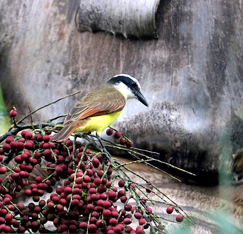 Note that this is the “pecking order” as I witnessed it, with possibly others eating when I was not out watching. And I did see one Rufous-backed Wren try to eat a berry, but the berries may be too large for them and they would be more timid maybe than even the Clay-colored Thrush. I saw a Boat-billed chase a Thrush away, but none of the birds interact with the squirrel in my presence. 🙂