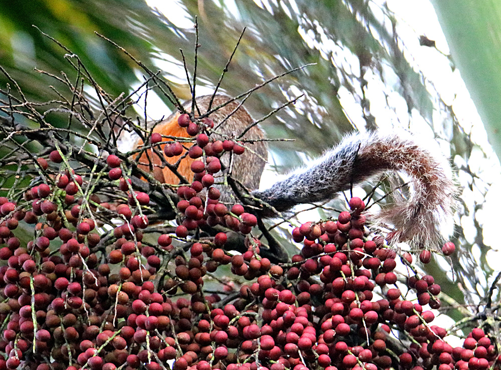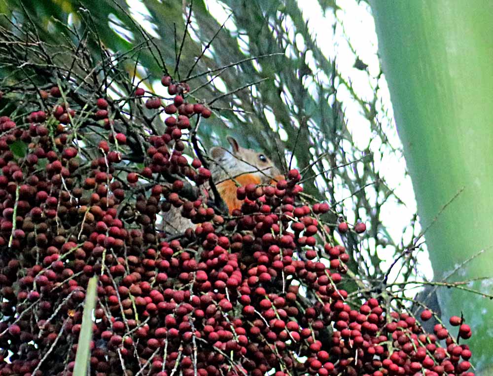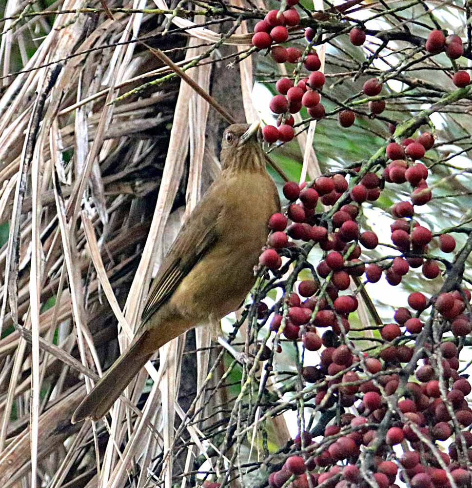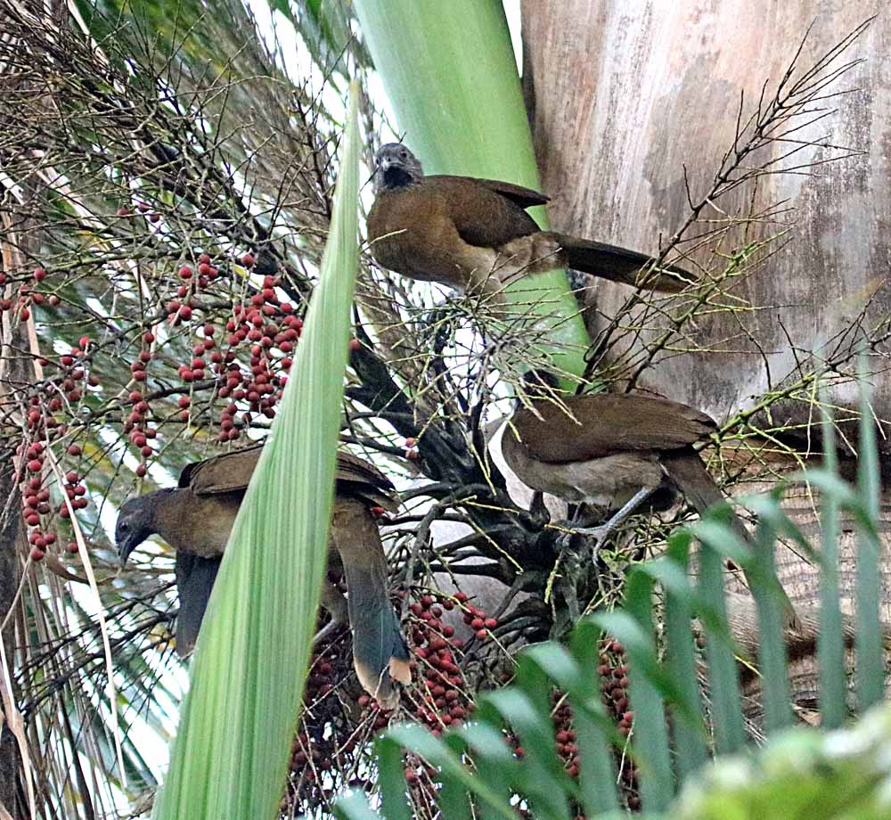 That big bunch of green palm berries in my October 25 post turned red in November and multiple creatures began to eat with the Chachalacas and Boat-billed Flycatchers the most possessive. Below this introductory photo is a gallery showing the “pecking order” for these particular palm berries when I was out to see it. Note that I never saw the iguanas eating them (though they do eat the Nance Berries) but that doesn’t mean they didn’t partake, I just never got a photo. And they would possibly be some competition to the Chachalacas, though those birds stay in families or flocks outnumbering others, as well as being the largest. 🙂