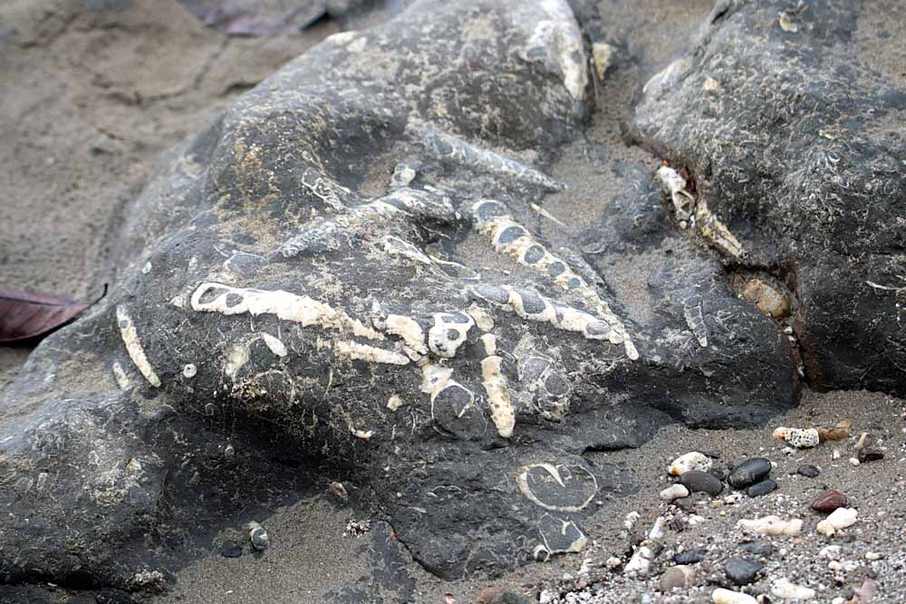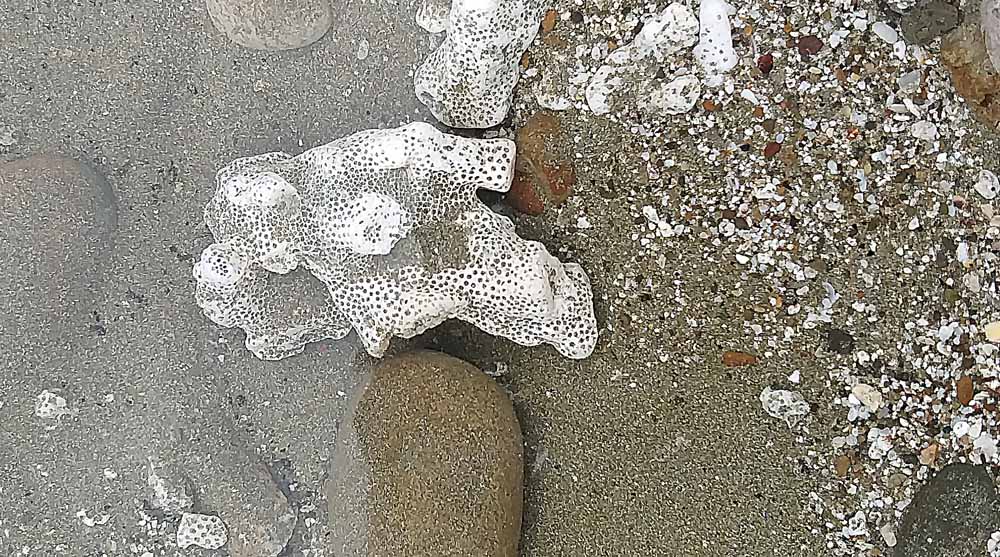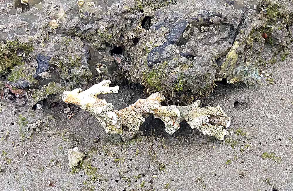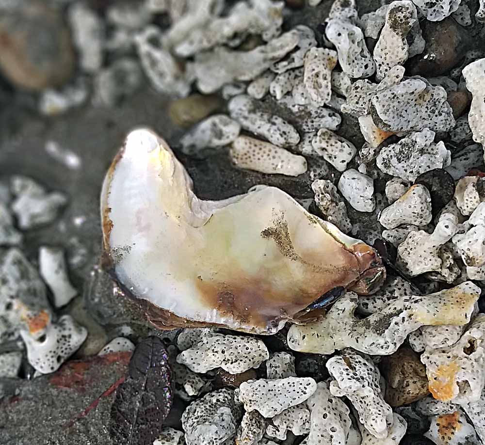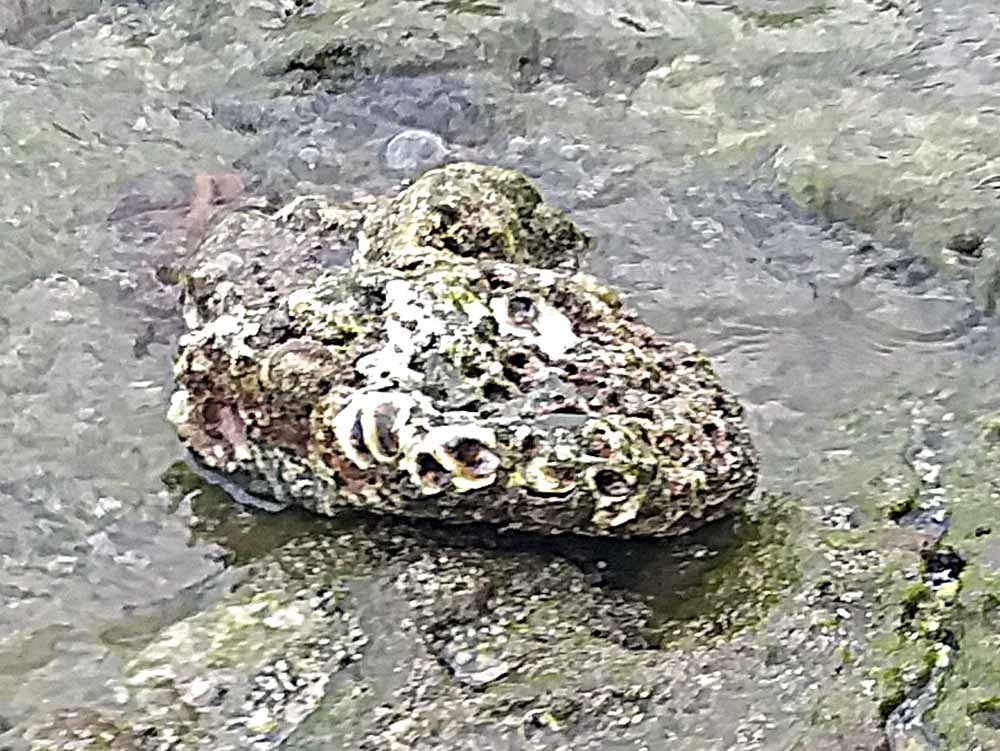 One of my plans for this second visit to Punta Leona was to photograph lots of interesting sea creatures in the Tidepools of Playa Mantas at low tide. Well, the low tide time I could go out for was cloudy and misty rain, but that is okay if there are sea creatures! 🙂 But I was disappointed with no starfish, seahorses, blowfish, crabs, etc! Only a couple of minnow-like fish, lots of broken up coral and shells and some fossils and lichen. But below this introductory photo are photos of what I did find and it was interesting, even if not what I was expecting. I will try tidepools again in September when I’m on the Caribbean Coast and see if my luck is any better there. 🙂