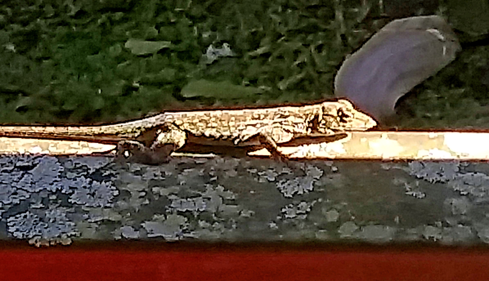 Two days in a row I photographed lizards on my terrace that I cannot identify as species, though on iNaturalist both are accepted as the same Genus, Anolis, but obviously different species, though none of the “experts” have yet to identify the species of either one. Hopefully they will both eventually get identified! 🙂