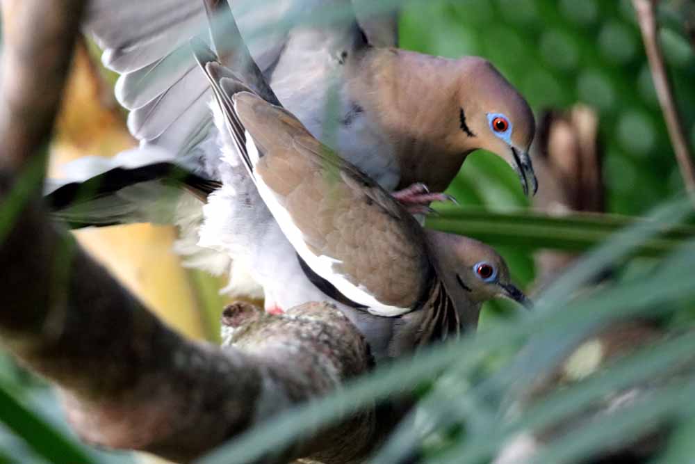 During this very windy time of the year (Jan-Mar) there simply are not many birds on my little hill, but in February I got photos of this pair of White-winged Doves (my gallery link) in the overlapping Nance Tree & Palms adjacent my terrace that I could photograph from my outdoor rocking chair. 🙂 This species is a little larger than some and seems to handle the wind okay, but others have simply disappeared to who knows where? And of course virtually no butterflies.