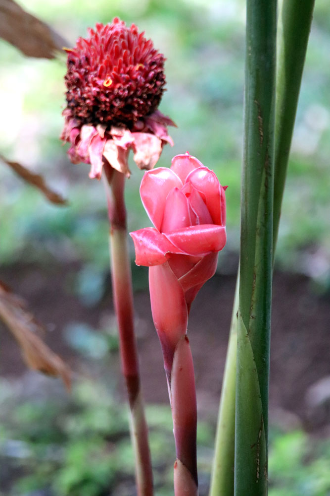I noticed the other day, within sight of my terrace, 3 different stages of the ginger flower: bud, baby flower and mature flower. So here the are in that order . . .