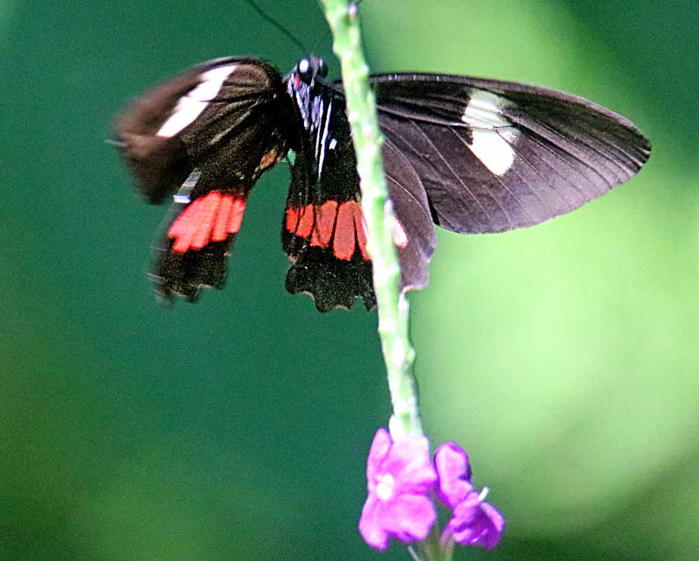 There are 5 different “Cattleheart” (Parides) butterflies that are very similar to this one but I don’t think any are an exact match, so I’m putting it in the Genus and will hope for an expert identifier on iNaturalist to give it a correct species name. Then I will change it in my gallery. These black, red and white Swallowtails (linked to my gallery where there are about a dozen species of these ). They seem to be quite common in Costa Rica and not easy for me to differentiate all of the species. 🙂