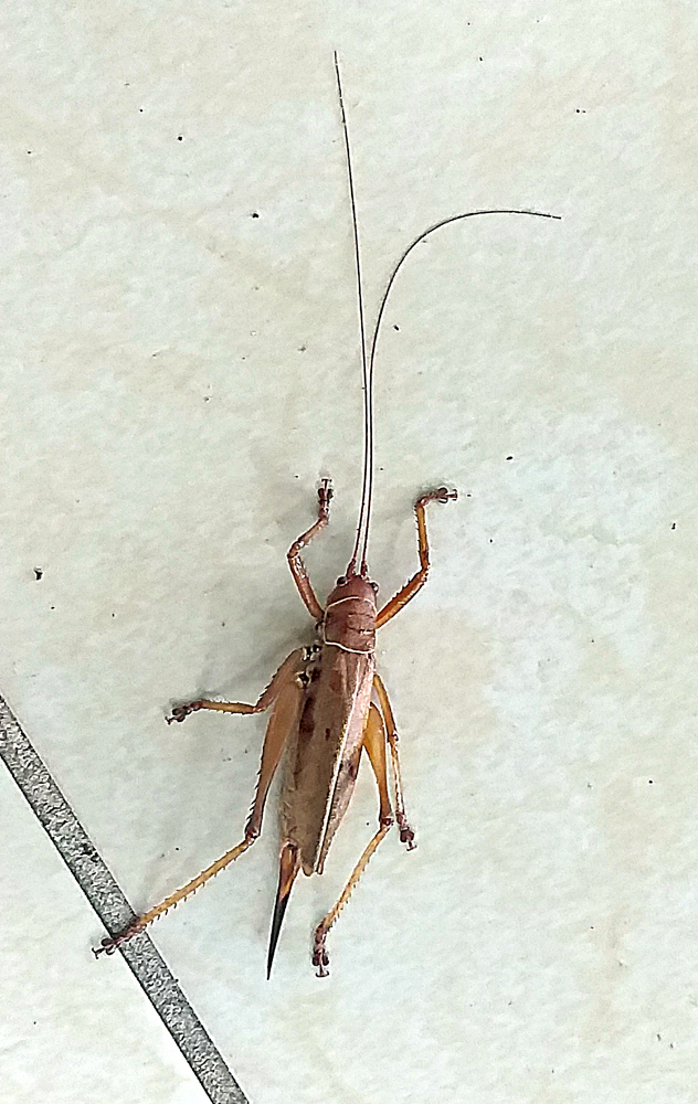I know, it looks like a grasshopper and it may be, but the AI on iNaturalist would only go so for as the genus in identification, so I will wait for a bug expert to identify which grasshopper this is! 🙂 Here’s two shots, the top view with my cell phone and the side view with my telephoto lens on a Canon camera. And I do expect it to be identified eventually.