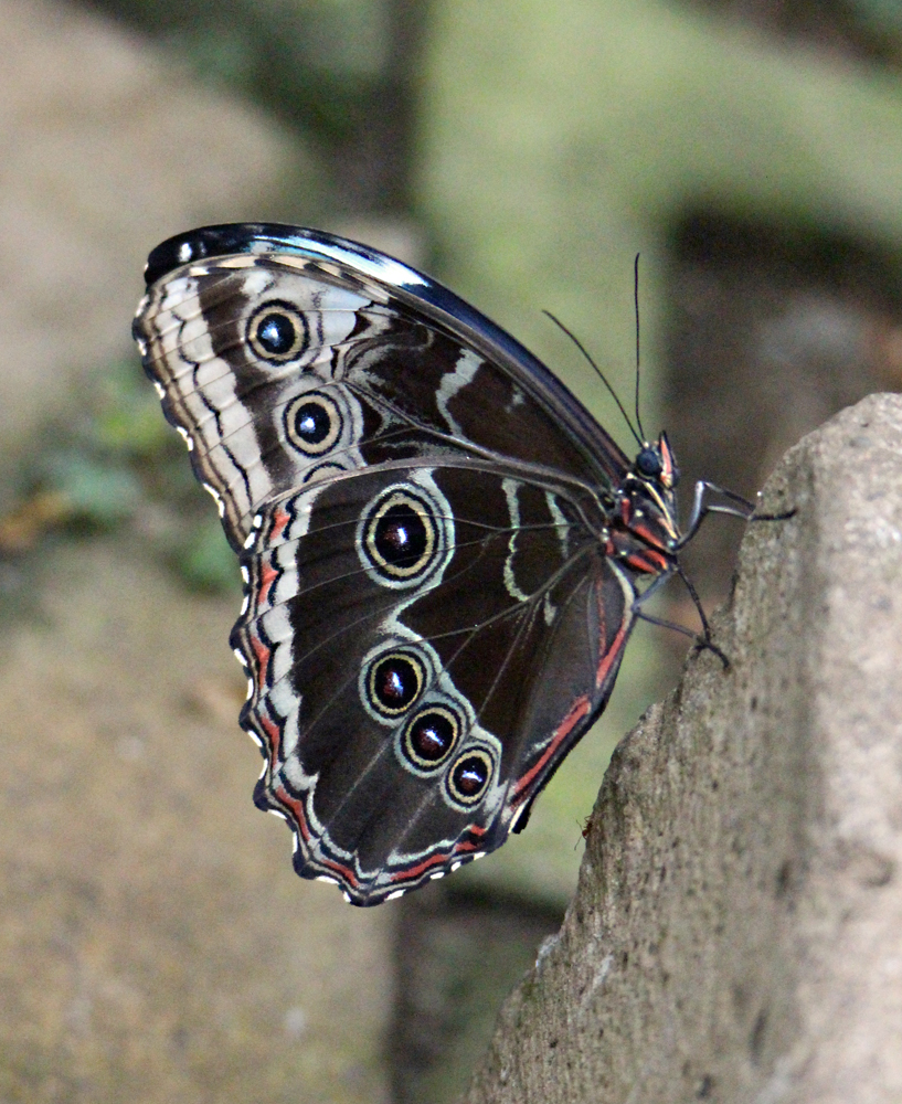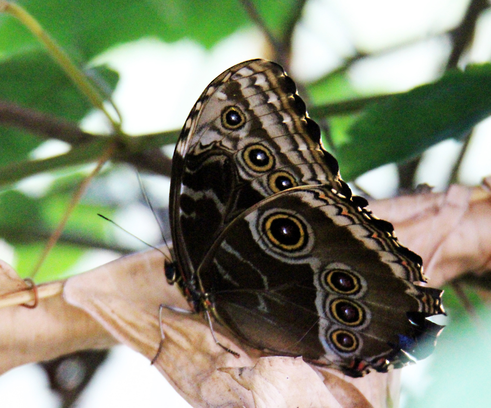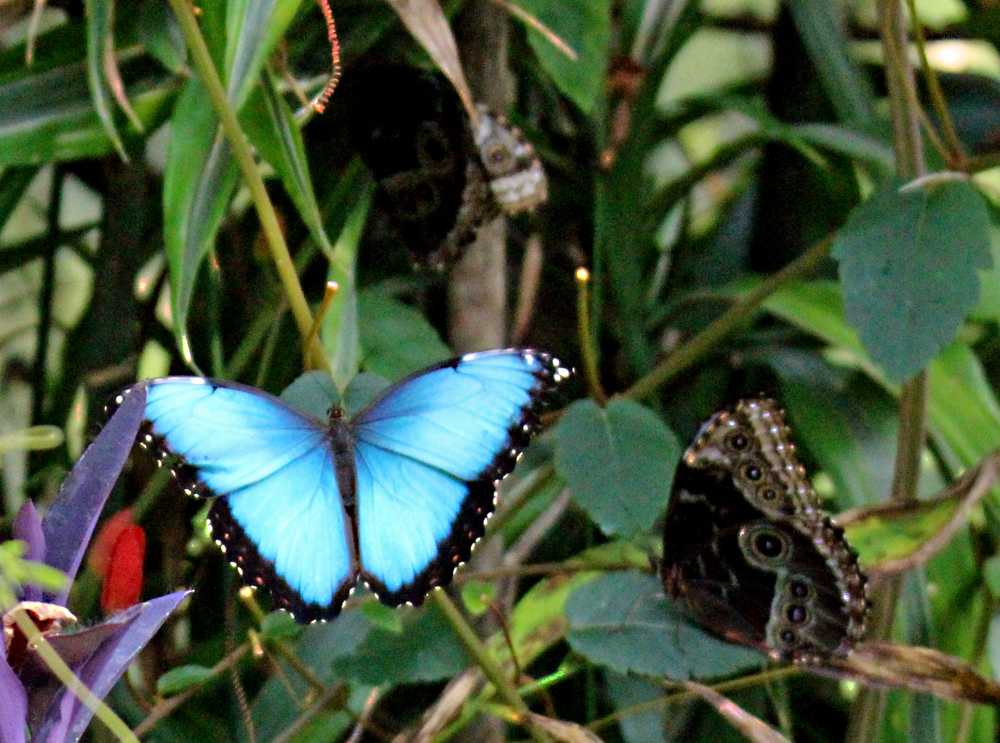 2 Blue Morphos at Lodge (open-wings & closed-wings)