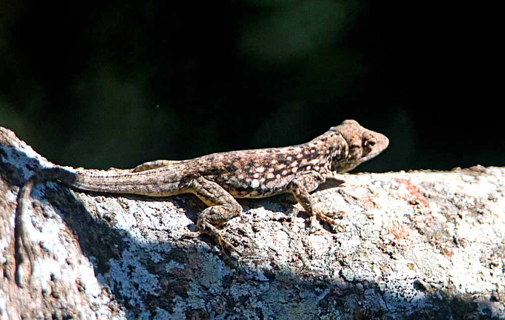 Just one of the 245 species of reptiles in Costa Rica, an adult Black Spiny-tailed Iguana (my gallery link) climbing up the almost vertical concrete retainer-wall behind one of my gardens that is covered in vines, ground cover, ferns and whatever will cover plain ol’ concrete! (my jungle style!). Though I’ve had and photographed several juveniles in that garden, this is my first adult. 🙂 I guess he went on up the hill or driveway to K’s house and gardens! 🙂 Looking for food.