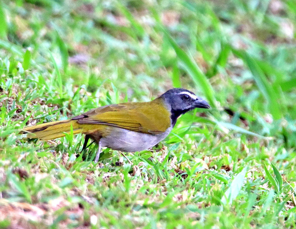 Fairly common in humid lowland forest edges, farms and gardens all over Costa Rica and is found from Mexico south through most of South America. When you get a front view, you see the unique buff-colored (beige to pinkish) spot on his throat with a black border. There are many examples in my Buff-throated Saltator Gallery, just did not get that view with this one in my garden last week.