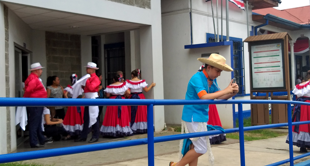 Every year the entire country flies flags and marches in parades to celebrate their independence from Spain and I’ve missed only 3 of the parades here in Atenas because I was in the Caribbean during this week. And was about to miss another for the same reason, but once I changed my trip this year to October, I thought I would again photograph the parade, but with the main part of the parade being from 10 to 12 during some of the hottest sunshine of the day and my right knee hurting, I decided to miss the parade on purpose this year. But I’ve posted links at the bottom of this post to the 6 parades I did photograph, plus I wore my Costa Rica National Soccer Team shirt (red, white & blue) to my usual breakfast out at Restaurant El Fogon Campesino and not only was the staff dressed patriotically but they had a marimba band playing on the terrace near where I always eat. So that was my celebration today! 🙂